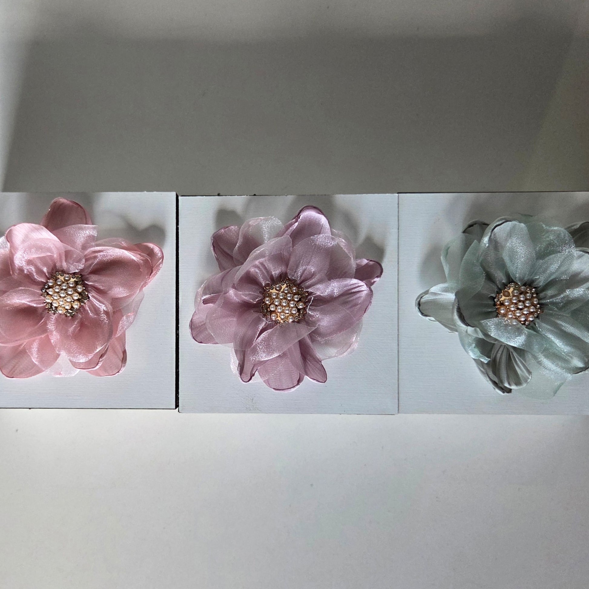 Our fleur collection features a beautiful white, wooden box, with a 3D satin, organza flower on the lid.